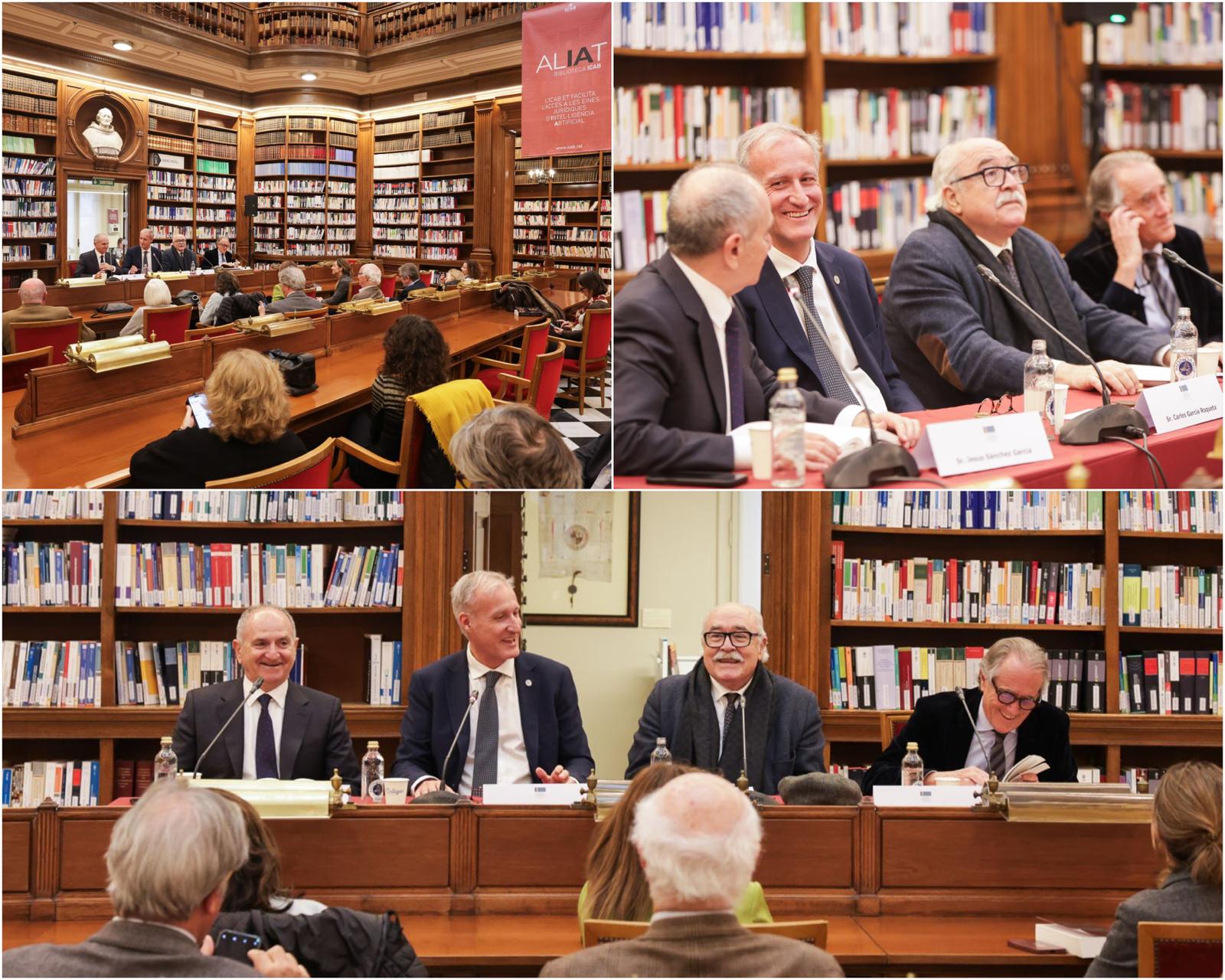 La sessió ha comptat amb la benvinguda institucional del secretari i bibliotecari de l’ICAB, Carles Garcia Roqueta, i amb la participació del degà emèrit Jesús M. Sánchez, el secretari emèrit Luis Sales i el mateix autor.