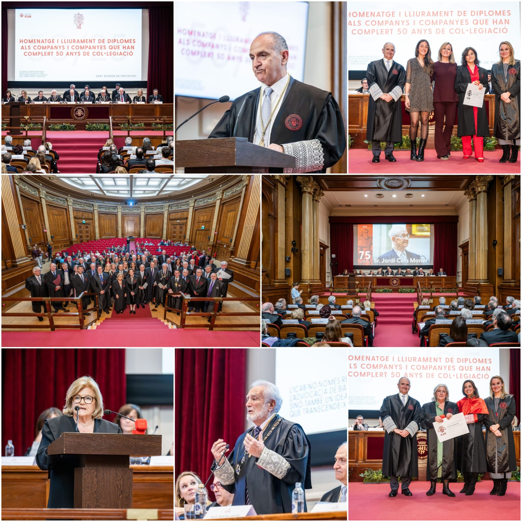 L'Il·lustre Col·legi de l'Advocacia de Barcelona va celebrar aquest dimecres 12 de març un emotiu acte d'homenatge als advocats i advocades que enguany compleixen 50 i 75 anys de col·legiació. L'esdeveniment, que va tenir lloc a la Sala d’Actes del Palauet Casades, s'emmarcava dins de la Festivitat de Sant Raimon de Penyafort 2025.
