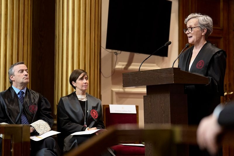 En nombre de la Academia, la Excma. Dª. Encarna Roca Trias ha ofrecido el discurso de contestación, resaltando la trayectoria y la contribución académica de la nueva miembro. Acto seguido, el presidente procedió a la investidura solemne, con la imposición de la medalla y la entrega del diploma a la nueva académica.