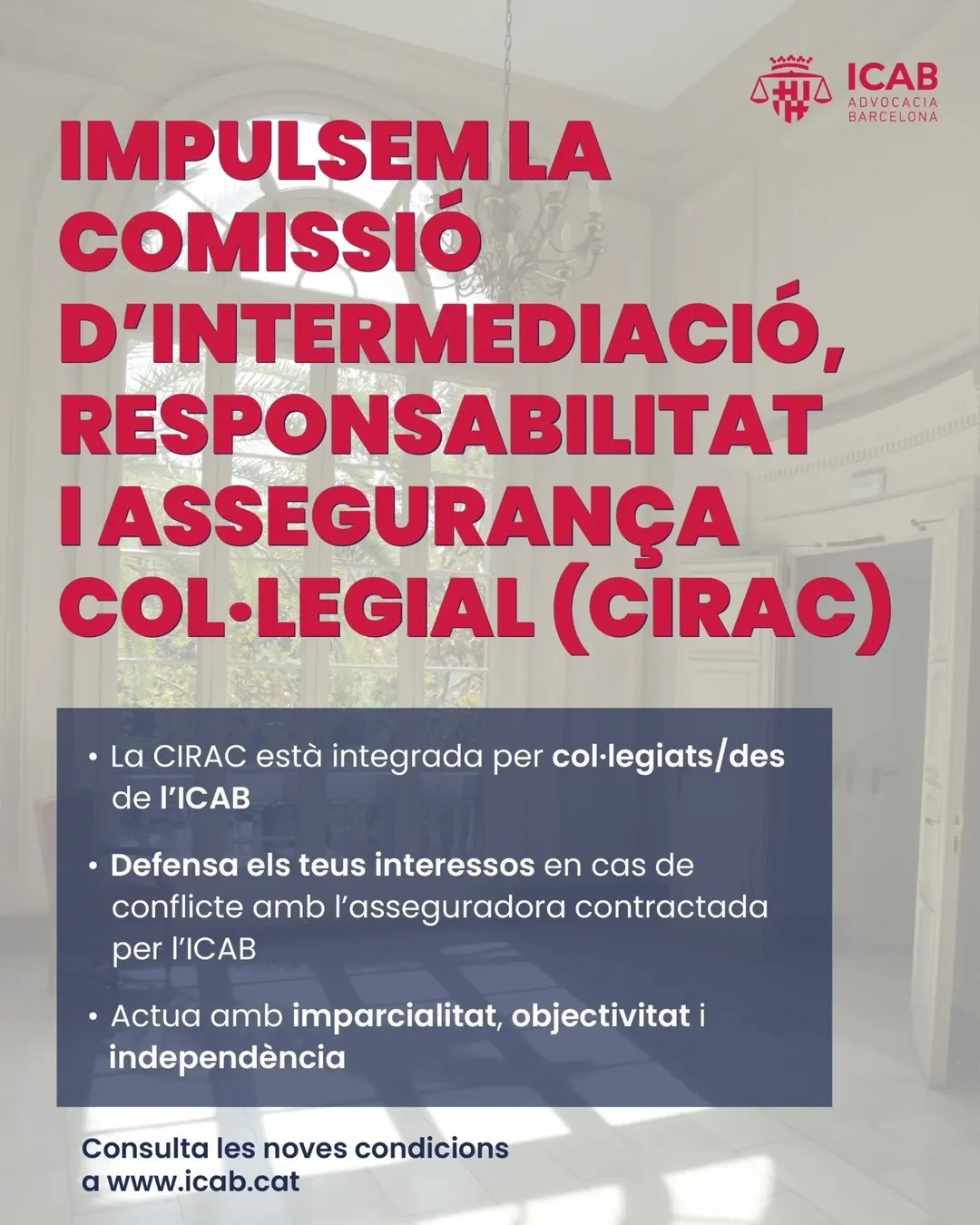 • La CIRAC está integrada por colegiados/desde el ICAB.
