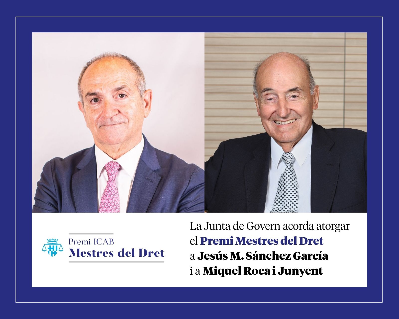 En la reunión celebrada el 19 de noviembre de 2025, la Junta de Gobierno del Colegio de la Abogacía de Barcelona ha acordado otorgar el Premio Maestros del Derecho a Jesús M. Sánchez García y a Miquel Roca i Junyent, en reconocimiento a su trayectoria y aportación a la abogacía.