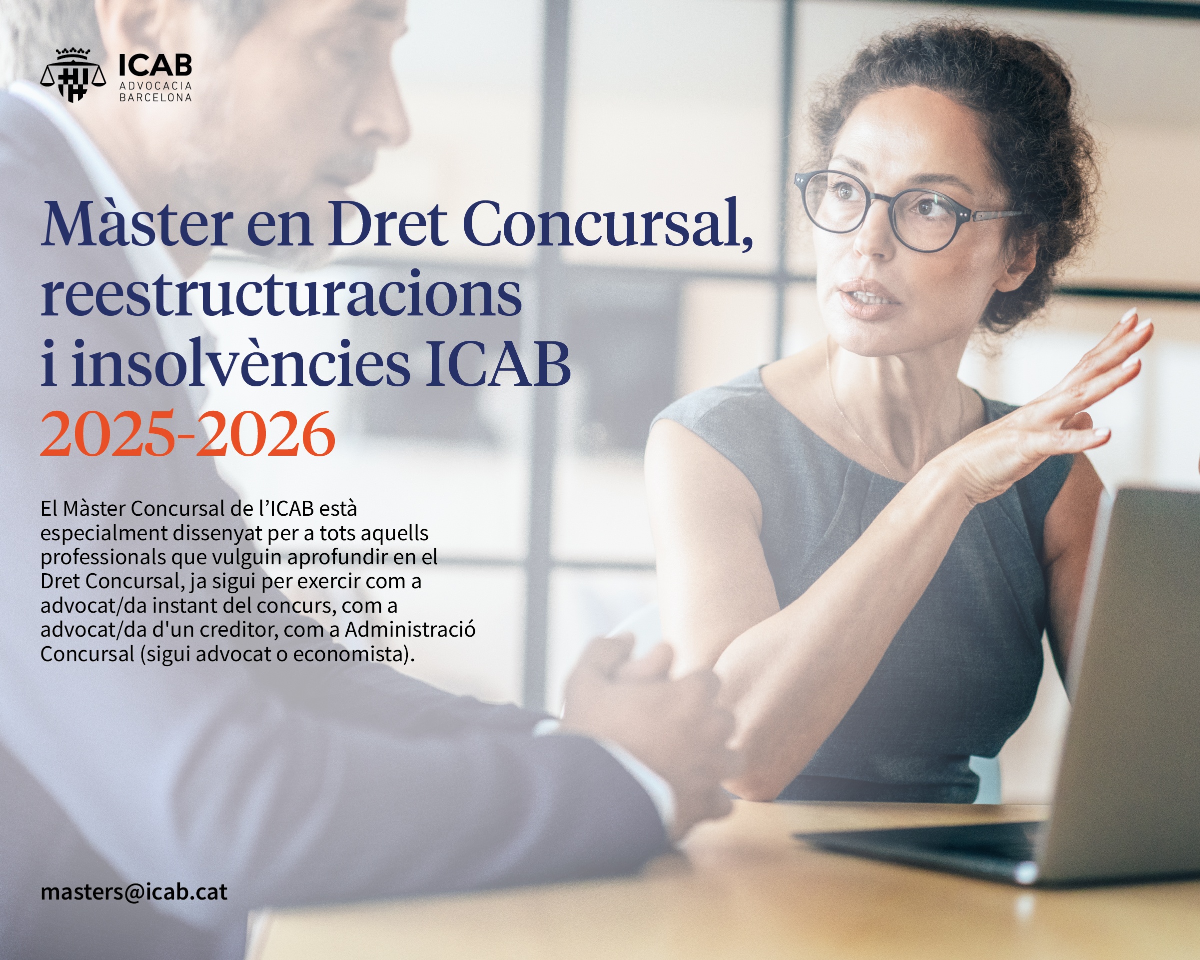 Máster en Derecho Concursal, reestructuraciones e insolvencias ICAB 2025-2026 (presencial y on-line)
